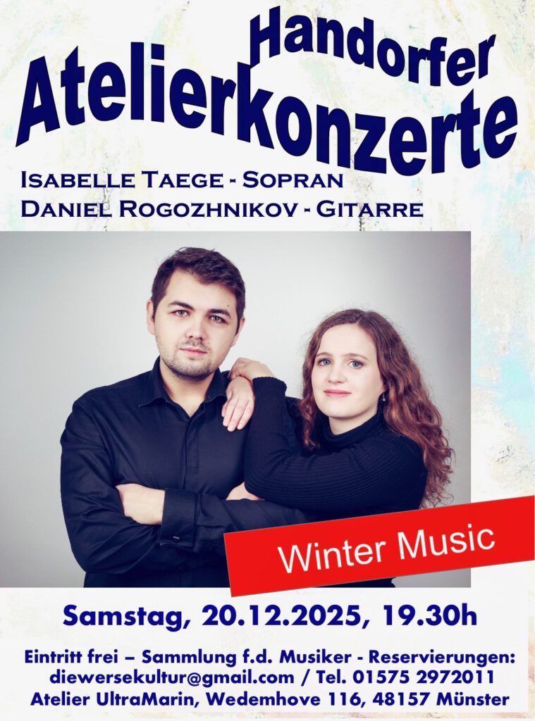 Im Atelier UltraMarin finden im Rahmen der Kulturinitiative „DieWersekultur.de“ sporadisch Atelierkonzerte in kleinem, intimen Kreis statt. So klein der Kreis, um so hochkarätiger die Musik.