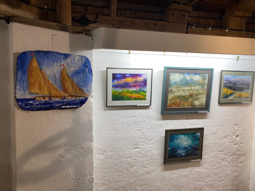 Zusammen mit der Amrumer Malerin Birgitt Sokollek stelle ich aktuell bis zum 10.7. maritime Bilder aus in der 300 Jahre alten Mühle in Nebel auf Amrum.