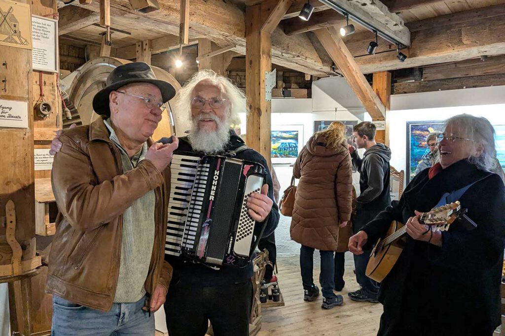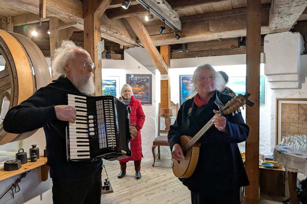 Am Sonntag 29.3.226 fand die Vernissage statt, mit vielen Amrumern, Gästen auf der Insel, Vertretern des Vereins zur Erhaltung der Mühle, des Tourismusbüros Amrum und der lokalen Presse: ein sehr schön gestaltetes, beeindruckendes Event! Diverse kleine Ansprachen wechselten sich ab mit traditioneller Amrumer Musik und Erläuterungen zu den ausgestellten Bildern. Auch für das leibliche Wohl der Besucher war bestens gesorgt.